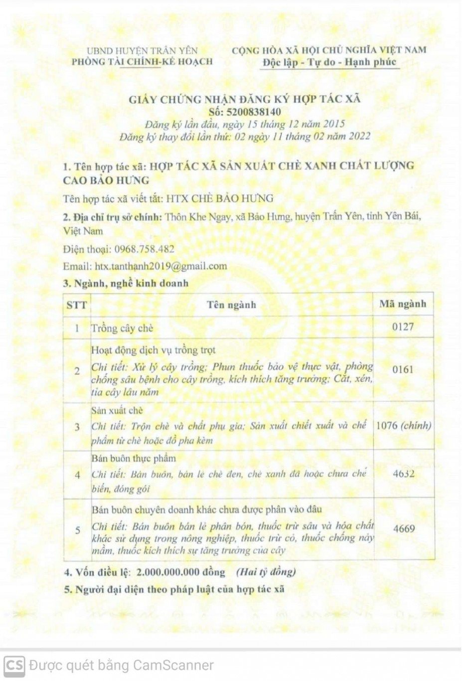 Hợp tác xã sản xuất chè xanh chất lượng cao Bảo Hưng