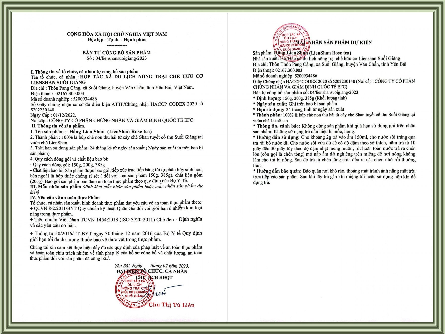 Hợp tác xã Du lịch Nông trại chè hữu cơ Lienshan Suối Giàng