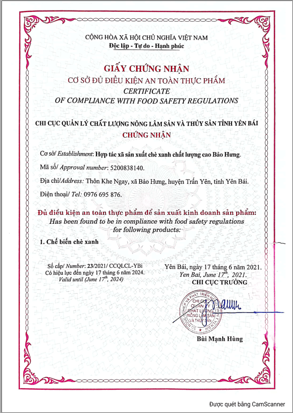 Hợp tác xã sản xuất chè xanh chất lượng cao Bảo Hưng