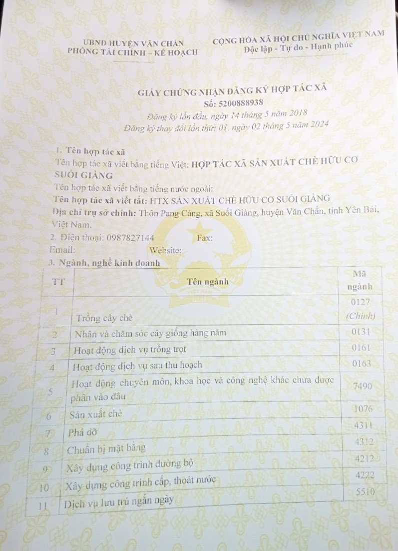 Xuất xứ: Hợp tác xã sản xuất chè hữu cơ Suối Giàng