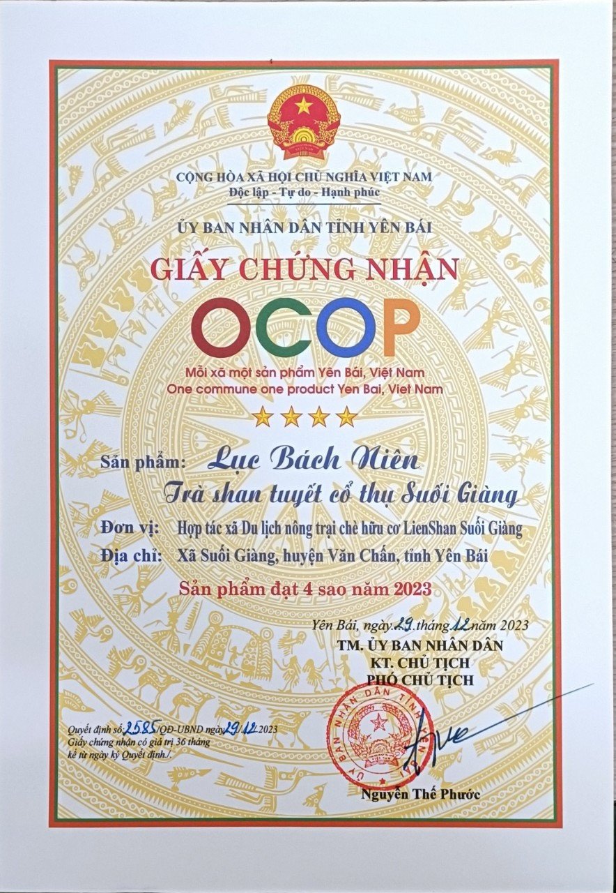 100% búp chè được lấy từ những cây chè Shan tuyết cổ thụ có độ tuổi từ trên 60 năm trở lên tại Suối Giàng, Văn Chấn, Yên Bái.